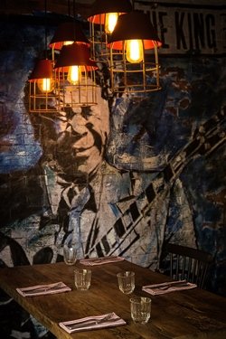 Ahşap üzerine çizilmiş, baskı efektli boğa resmi, adeta yerinden çıkıp gitarıyla şarkılar söyleyecek gibi duran, tuğla duvar üstü, yağlı boya efektli B.B. King'in resmi kadar Rustyfork’un panellerini süsleyen cigarbox gitarlar da mekanın çarpıcı detayları olarak öne çıkıyor. İki katlı mekanın üst bölümünde özel günler için ayrı bir bölüm, arka bölümünde ise büyük bir bahçe bulunuyor.