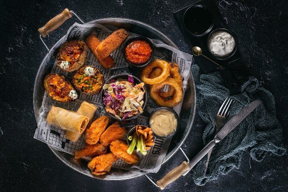 Çorbalardan New England kum midyesi çorbası Clam Chowder, başlangıçlardan patates kızartması, aioli ve bourbon bbq sos eşliğinde cajun baharatlarla panelenmiş karides Southern Fried Shrimp, ana yemeklerden kızarmış bebek patates ve salata yanında aromatik tereyağıyla lezzetlendirilmiş dry - aged dana pirzola Cowboy Steak, ballı, hardallı patates püresi eşliğinde tütsülenmiş dana sosis Smoked Texas Sausage, milföy kaplı, kremalı sotelenmiş tavuk ve sebzeler Chicken Pot Pie...