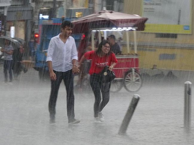 İstanbul'da öğlen saatlerinde hava bir anda karardı. Ara ara gök gürültüsü duyulurken bir süre sonra sağanak yağmur başladı.