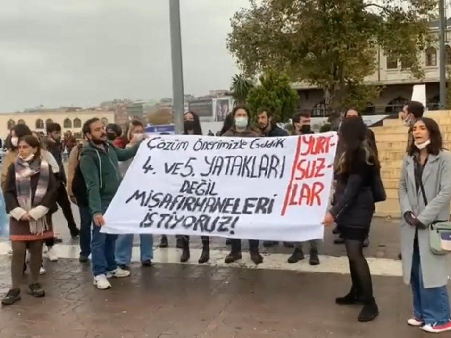 İstanbul’da bir grup öğrenci, barınma sorununa dikkat çekmek için eylem düzenledi. İlk olarak Kadıköy’de Haydarpaşa Garı TCDD misafirhanesi önünde açıklama yapmak isteyip, "Devlete ait bütün misafirhane ve konuk evleri öğrencilere açılsın” talebinde bulunmak isteyen eylemcilere polis tarafından izin verilmedi.