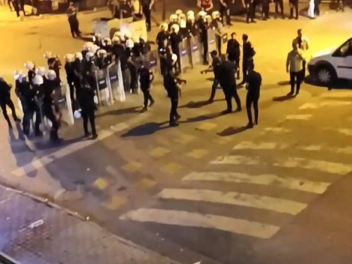 Polis sokakta geniş güvenlik önlemleri alırken, öfkeli kalabalığa biber gazı sıkarak müdahale etti.