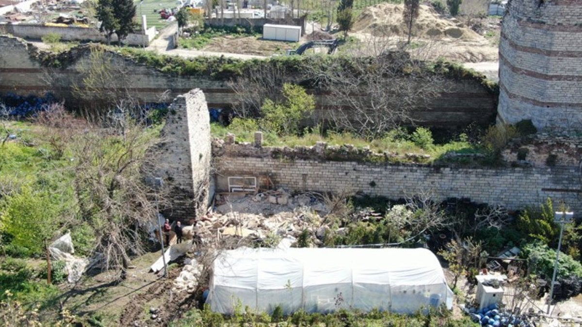 İstanbul'da çöken tarihi surlar havadan görüntülendi