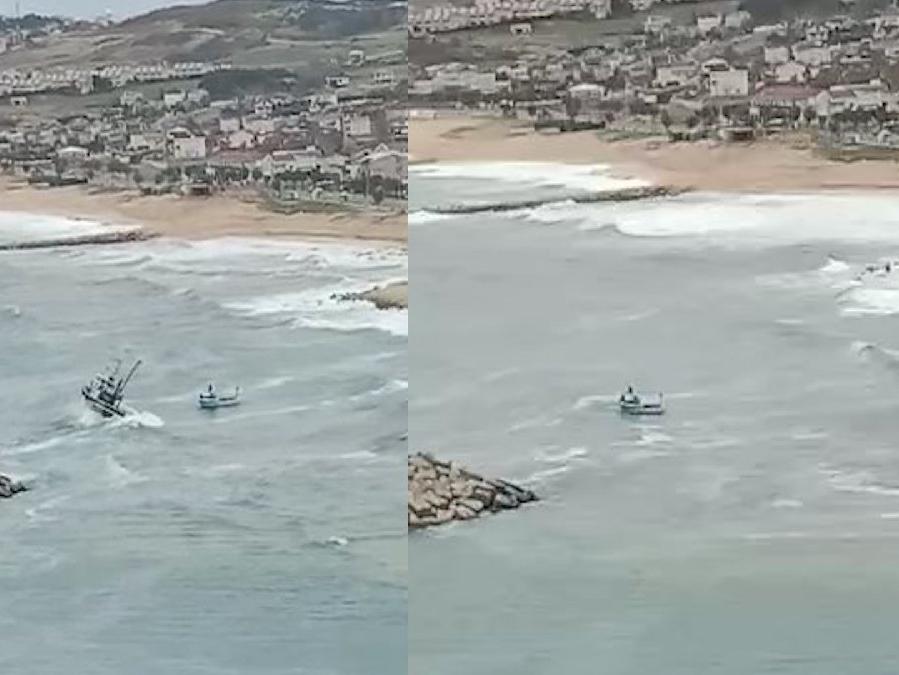 Küçük teknenin yardımına gelen daha büyük boydaki tekne de dalgalarla savruldu. Dalgaların savurarak götürdüğü küçük tekne kıyıda karaya oturdu.
