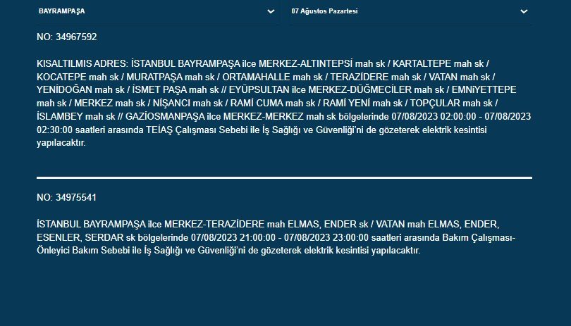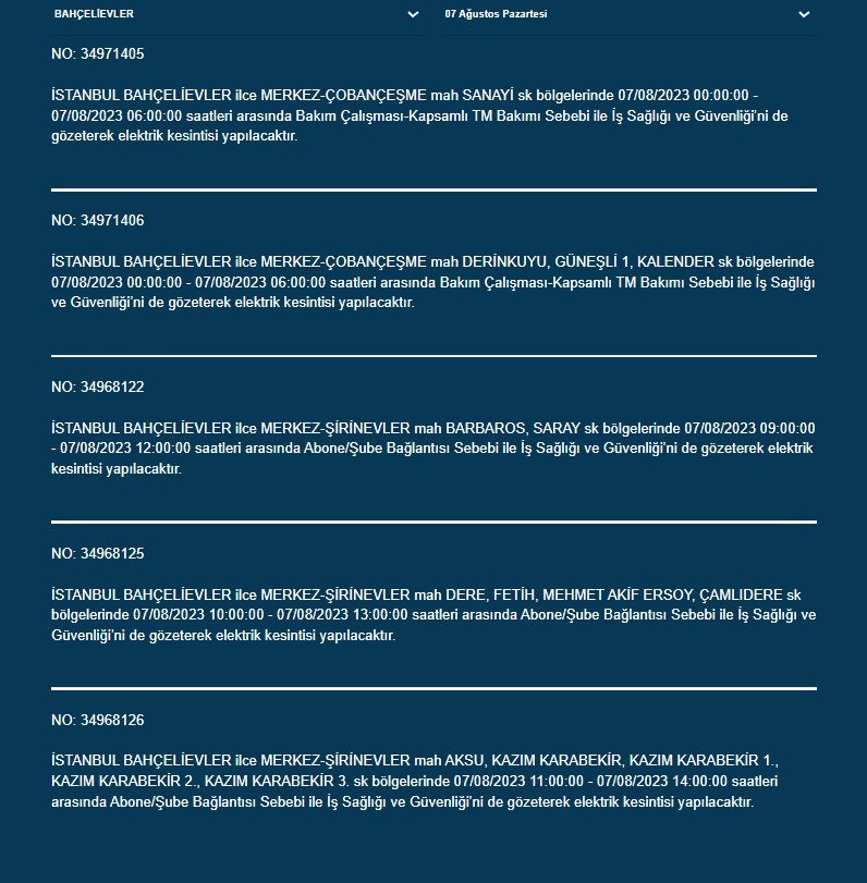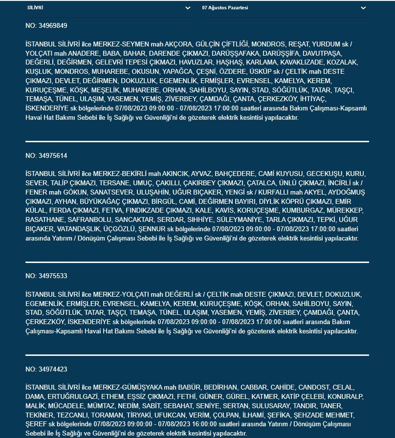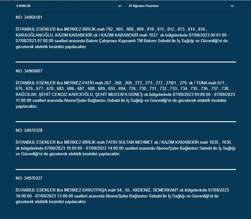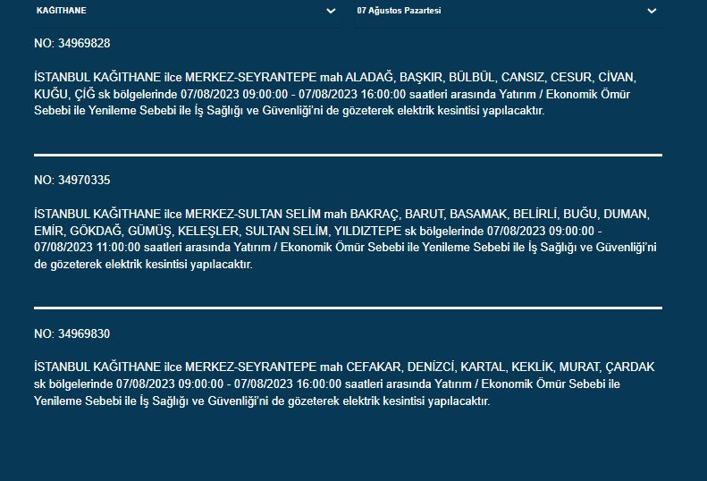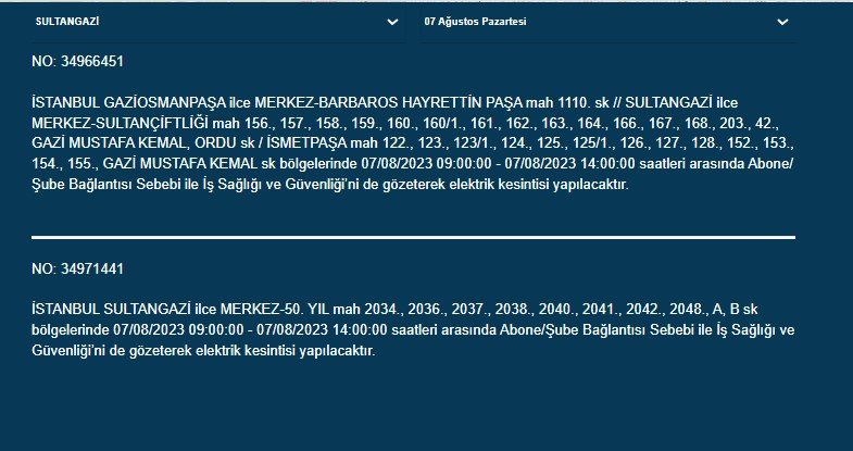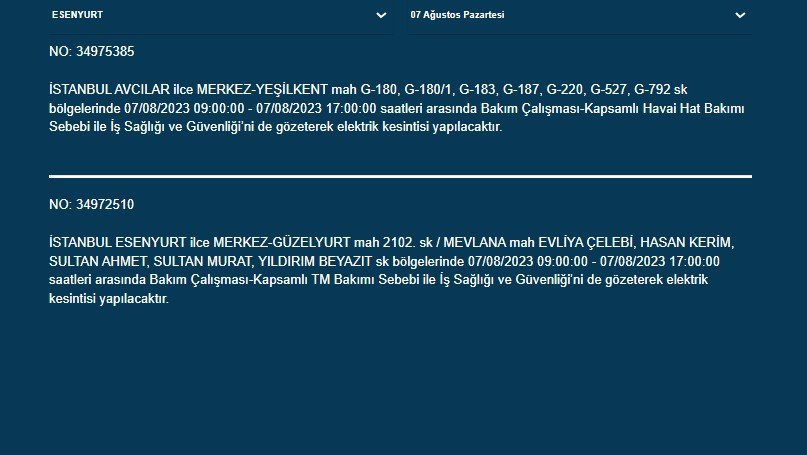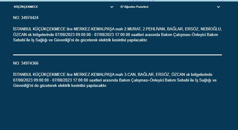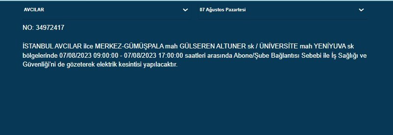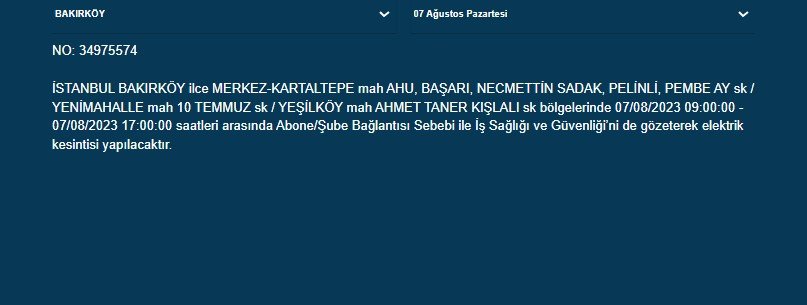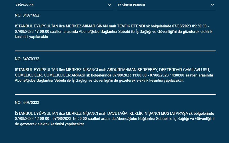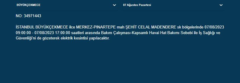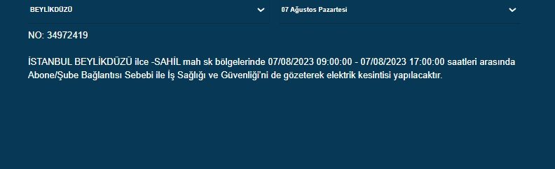 BEDAŞ'tan yapılan açıklamaya göre 7 Ağustos Pazartesi günü İstanbul'un 21 ilçesinde elektrik kesintisi yaşanacak. İşte saat saat elektrik kesintileri...