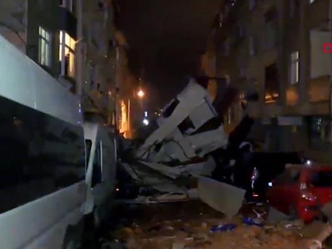 Sultangazi'de gece saatlerinde şiddetli lodos nedeniyle 5 katlı bir binanın çatısı yerinden koparak önce karşı binaya çarptı daha sonra da yere savruldu.