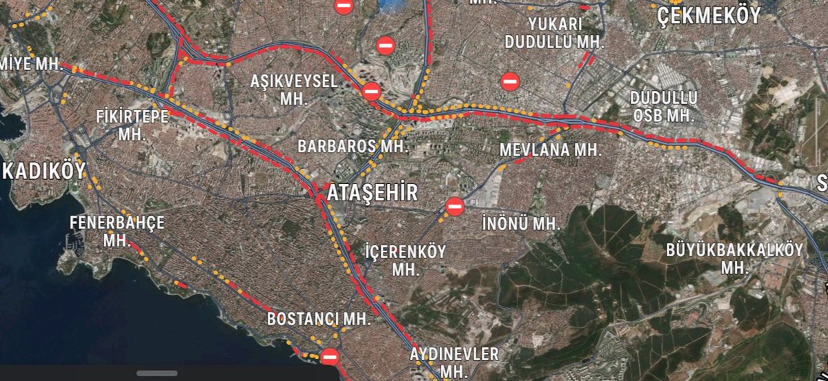 Yoğunluğun yaşandığı bir diğer bölge ise Çamlıca - Ataşehir - Kartal güzergahı oldu.