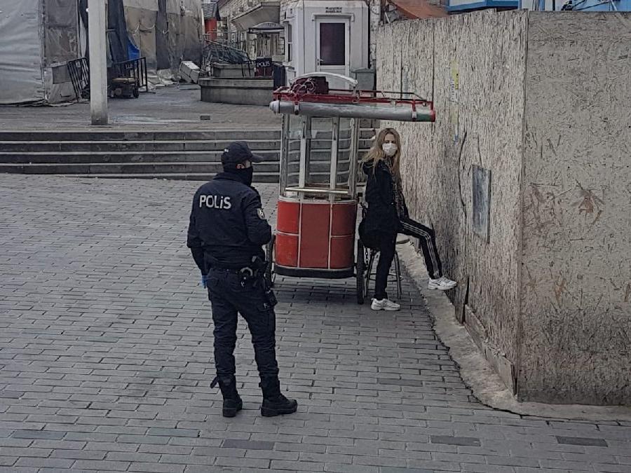 Kadın yoldan çevirdiği bir taksiye binerek uzaklaşmak istedi. Bu sırada olayı fark eden bir polis, tanıdığı taksi şoförünü telefonla arayarak kadını Taksim Meydanı'nda görevli polislere teslim etmesini söyledi.