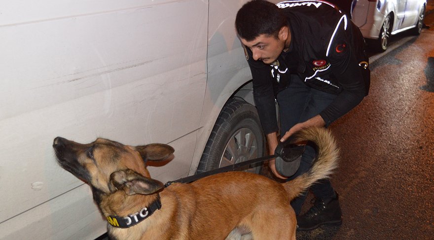 Hassas burunlu narkotik köpekleri şüpheli araçlardaki aramalarda görev aldı. DHA