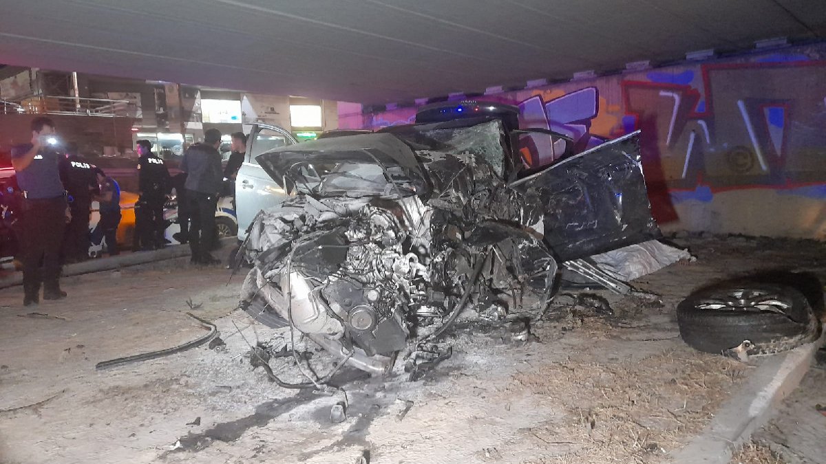 Kontrolden çıkan otomobil, köprünün beton bloğuna çarptı. Çarpmanın etkisiyle otomobilde bulunan Halil İbrahim Eşiyok, Uğur Tunç ve ismi öğrenilemeyen 2 kişi bulundukları yerde sıkıştı.