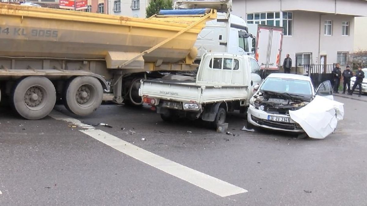 Kaza nedeniyle kamyonun çarptığı araçlar kullanılamaz hale gelirken, araçlarda kimsenin olmaması olası bir faciayı da önledi. Olay yerine gelen hafriyat kamyonu şoförü Enes Ahmet E. polis ekipleri tarafından ifadesi alınmak üzere polis merkezine götürüldü. Hafriyat kamyonunun biranda hareket ederek servis minibüsüne çarpması çevredeki bir sitenin güvenlik kamerasına yansıdı. Polisin kazayla ilgili incelemeleri sürüyor.