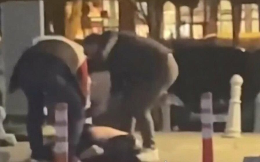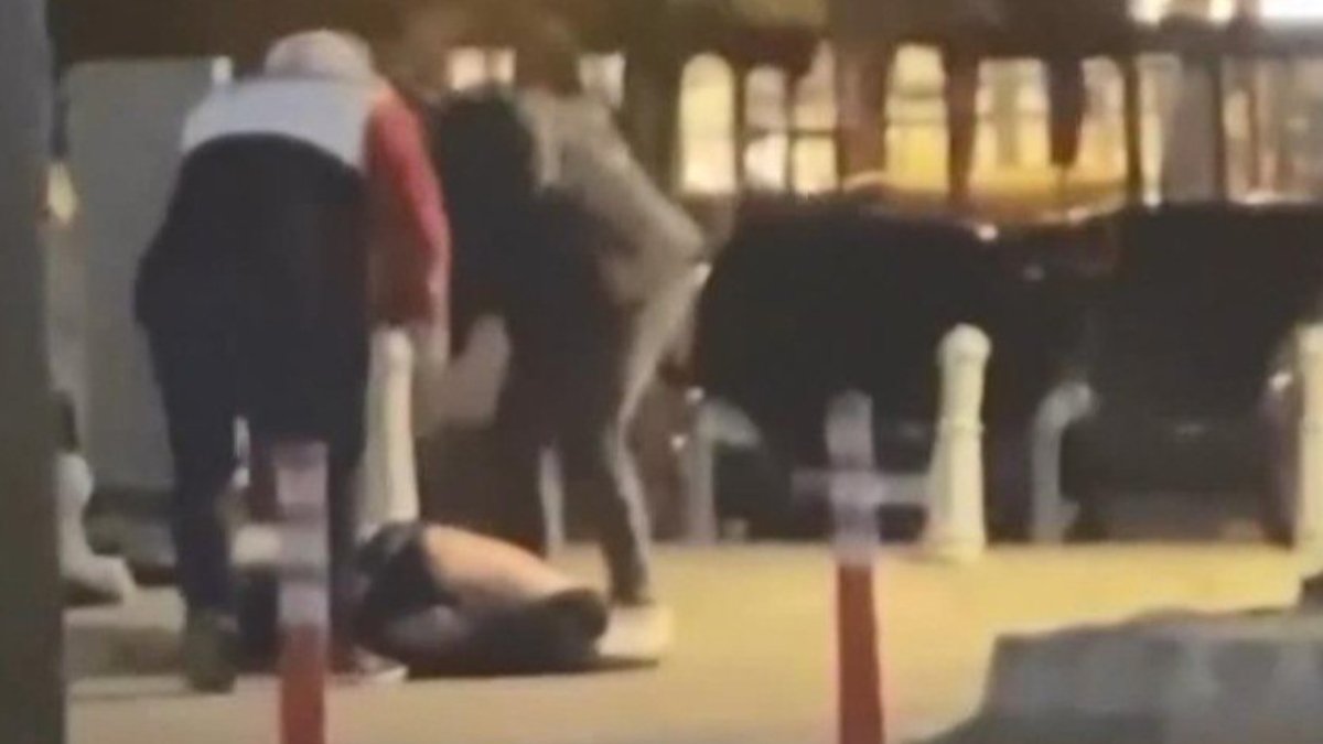 O anlar cep telefonu kamerasıyla kaydedildi. Görüntülerde, darbedilen kadının yere düştüğü ve çevredeki bir kişinin araya girdiği görülüyor.