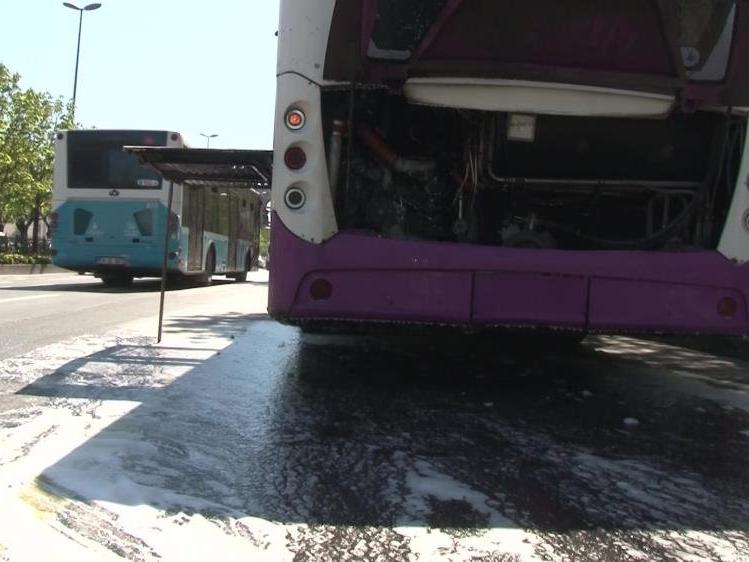Fatih'te seyir halinde olan belediye otobüsü, bilinmeyen bir sebeple alev aldı. Otobüs şoförünün yangını erken fark etmesi olası bir faciayı önlerken yolcular büyük panik yaşadı.