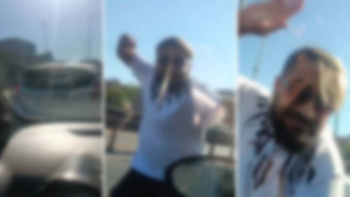 Sosyal medyada yayınlanan, içinde hamile bir kadının da bulunduğu bir otomobilin camlarına yumruk atan saldırganın görüntüleri tepki çekmişti...