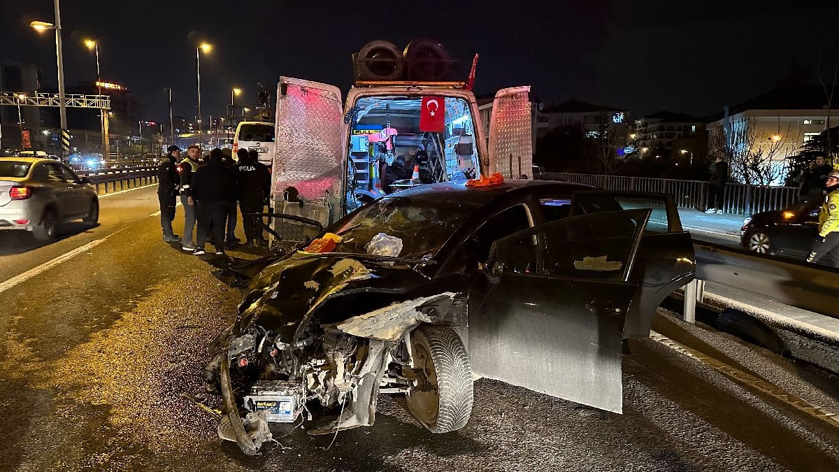 Araçta sıkışan yaralı sürücü, itfaiye ekiplerinin çalışması sonucu kurtarılarak sağlık ekiplerine teslim edildi. Bariyerlere çarpan diğer otomobil ise şeritte ters döndü.