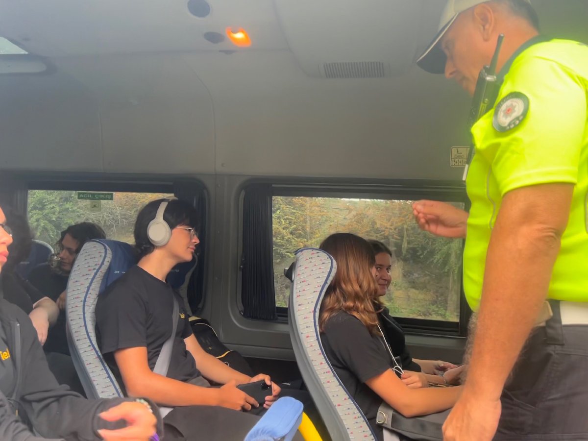Ayrıca denetimlere takılan bir öğrenci servisinin 'Dur' lambasının yanmadığı tespit edilirken, servis hostesinin ise mesleki yeterlilik belgesinin bulunmaması üzerine cezai işlem uygulandı. Görüntülendiklerini fark eden araç sürücüsü ve hostes gazetecilere tepki gösterdi.