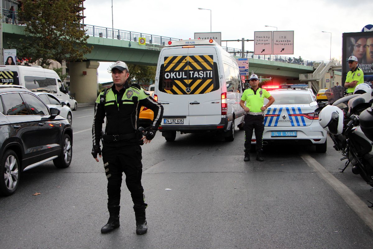 Maslak Büyükdere Caddesi üzerinde durdurulan servis şoförlerinin evrakları kontrol edilerek Genel Bilgi Taraması (GBT) yapıldı. Servislerde uyulması gereken kurallar hatırlatılarak uyarılarda bulunuldu. (DHA)