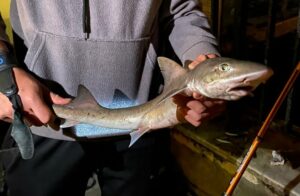 Oltasındaki balığı kıyıya çeken Kurt, yaklaşık 50 santimetre boyunda yavru köpek balığı avladığını fark etti.