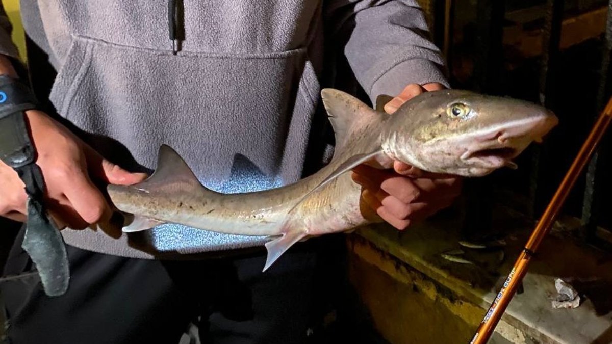 İstanbul'un Üsküdar ilçesinde, oltayla balık tutan bir gencin oltasına yavru köpek balığı takıldı.