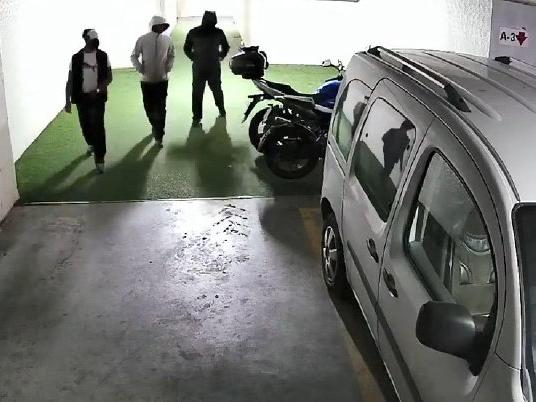 Esenyurt'ta bir sitenin kapalı otoparkına giren 3 şüpheli, motosiklet çalarak kayıplara karıştı. Şüphelilerden biri fark ettiği güvenlik kamerasına el hareketi yaptı.