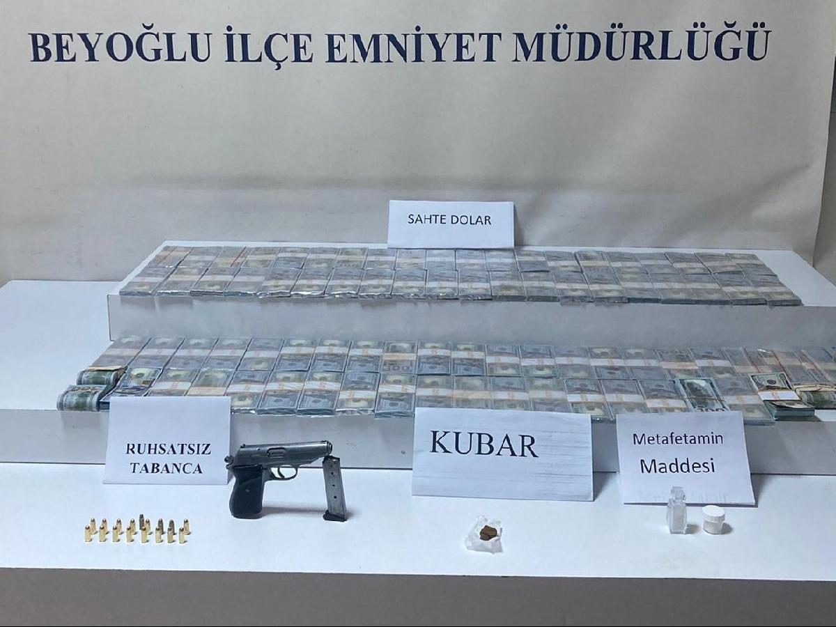Beyoğlu Hacı Ahmet Mahallesi'ndeki bir eve baskın düzenleyen polis ekipleri 700 bin dolar sahte para, ruhsatsız tabanca ve bir miktar uyuşturucu madde ele geçirdi. Olayla ilgili Suriye uyruklu bir kişi de gözaltına alındı.