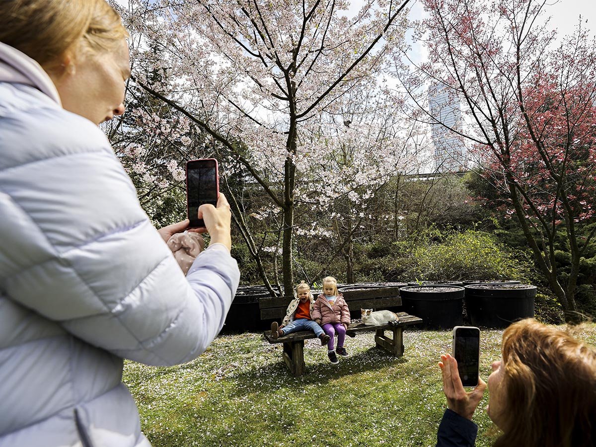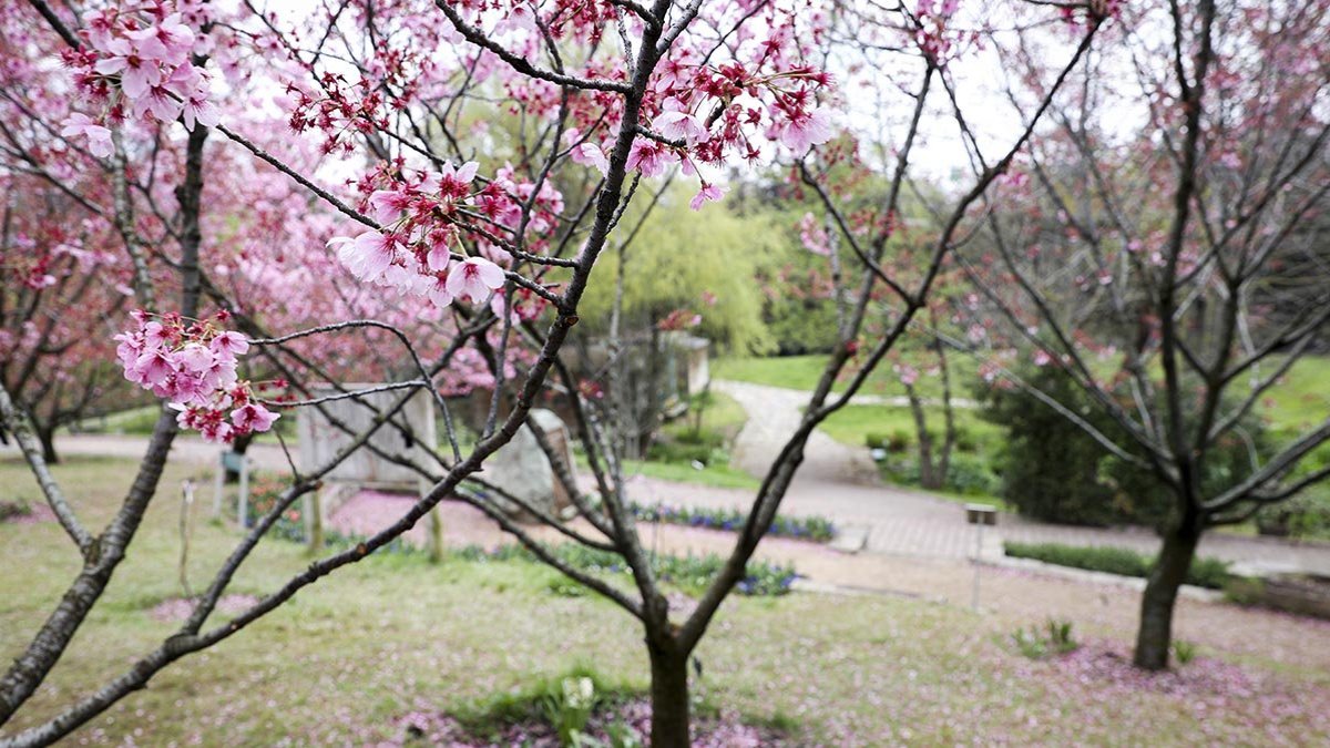 "Japon kiraz ağacı" olarak bilinen sakura ağaçları, ziyaretçilere ilkbahar güzelliği sunuyor.