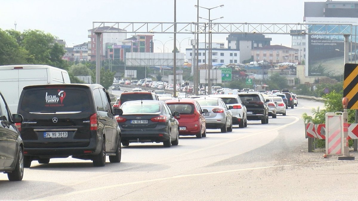 İstanbul çıkışında yaşanan trafik yoğunluğunun devam ettiği görüldü.