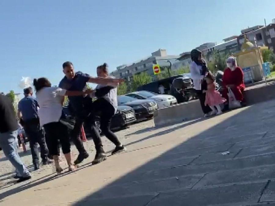 Tartışma kısa sürede kavgaya dönüştü. Polislere rağmen kadınlar tekme, tokat ve terlikleriyle birbirlerine saldırdı.