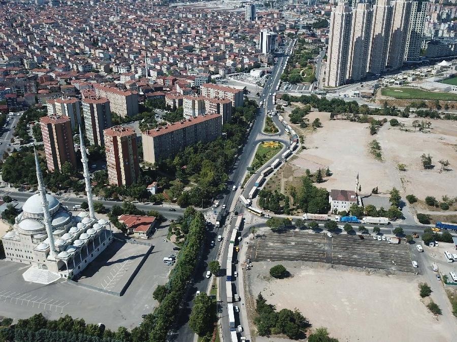 Çamlıca Gişelerinden itibaren başlayan yoğun TIR trafiği havadan görüntülendi. (DHA)