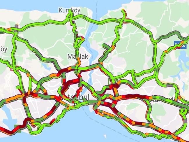 İstanbul Büyükşehir Belediyesi yoğunluk haritasında trafik yoğunluğu yüzde 69 seviyelerine ulaştı. İHA