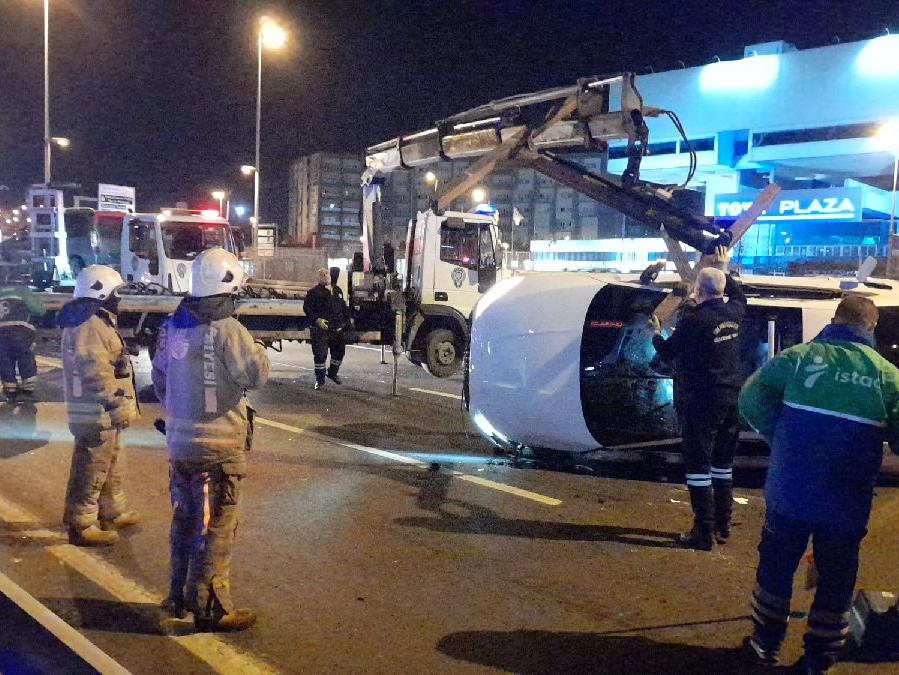 Çarpmanın şiddetiyle otomobil ters döndü. Kazayı gören diğer sürücülerin ihbarı üzerine olay yerine sağlık, itfaiye ve polis ekibi sevk edildi. Kazada yaralanan iki kişi ambulansla hastaneye götürüldü.