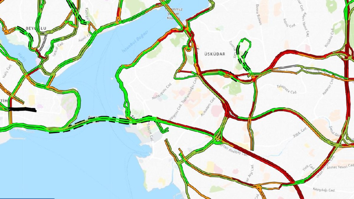 İstanbul Büyükşehir Belediyesi Trafik Yoğunluk Haritası'na göre, kent genelinde trafik sorunları yüzde 80'e kadar çıktı. Trafik yoğunluğu saat 9.50'de yüzde 67 olarak ölçüldü.