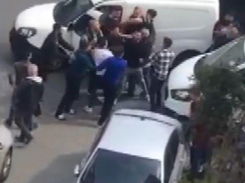Güngören'de yoldaki hafif ticari aracın içindekiler ile sokak sakinleri arasında kavga çıktı. Kavgada sokak sakinleri, araçtaki kişilere tekme ve yumruklarla saldırdı.