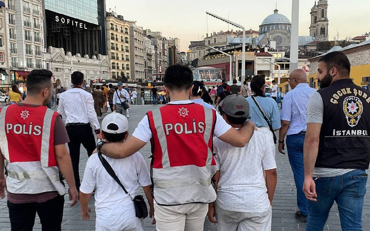 Taksim Meydanı ve İstiklal Caddesi çevresinde dilenen ve seyyar satıcılık yapan toplam 11 çocuk da muhafaza altına aldı.