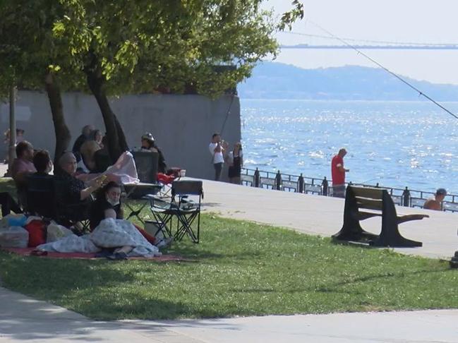 Üsküdar sahiline gelenlerden bazıları denize girdi. Sahilde parkta oturanlar piknik yaptı, bazıları ise yürüdü.