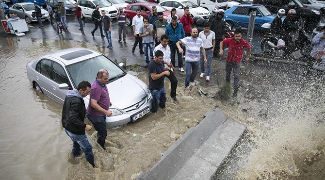 Sarıyer -İstinye'de aniden bastıran yağmur araç sürücülerini hazırlıksız yakaladı. Kiraladığı otomobilde mahsur kalan yabancı uyruklu bir sürücü su baskınını cep telefonu ile görüntüledi. Yaptığı kayıt sırasında, "Türkiye'de yaşamak çok heyecanlı" dedi.