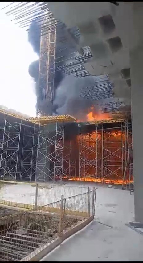 Çevre ilçelerden su tankerleri de itfaiye ekiplerine yardım etmek için alana sevk edilirken inşaat alanında hasar meydana geldi.