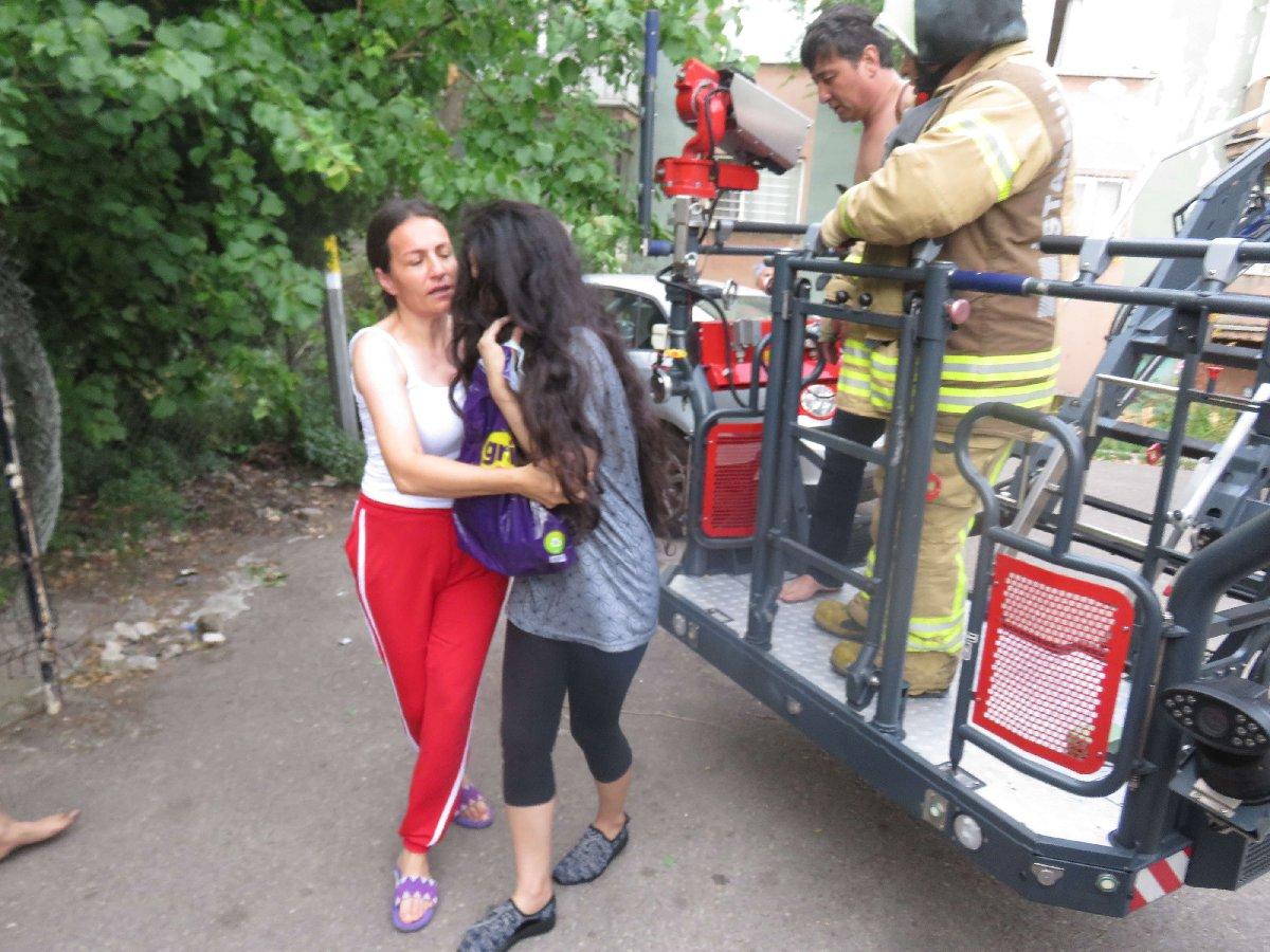 Dairedeki bir kişi kendi imkanlarıyla dışarı çıkmayı başarırıken, mahsur kalan 2 kişi cama çıkarak kurtarılmayı bekledi. İhbar üzerin olay yerine gelen itfiaye ekipleri bir yandan yangına müdahale ederken, bir yandan da mahsur kalanları kurtarmak için merdiven aracını açtı. Kısa sürede mahsur kalan 2 kişi kurtarılarak aşağı indirildi. Dumandan etkilenenler ambulansla hastaneye kaldrılırken, hayati tehlikelerinin olmadığı öğrenildi.