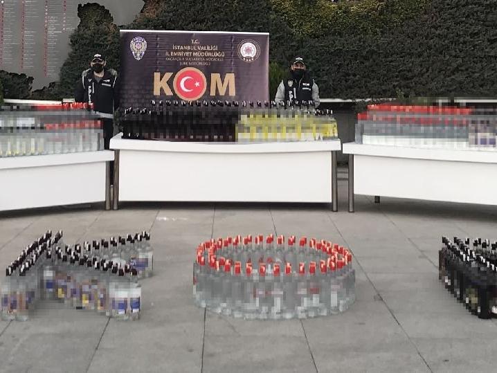 İstanbul'da yılbaşı öncesinde sahte içki önlemlerini arttıran polis ekiplerince düzenlenen operasyonda, piyasa değeri 4 milyon lirayı bulan 7 bin 716 şişe içki ele geçirildi.