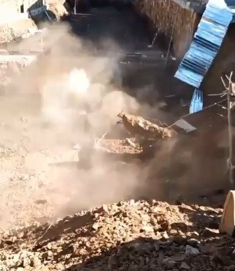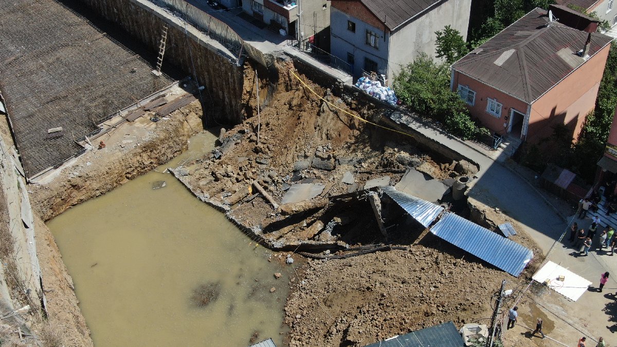 Deprem oluyor zanneden mahalle sakinleri kendilerini dışarı attı. Yetkililerin inşaat alanındaki incelemeleri sürüyor. İnşaat alanı ve çöken bölüm havadan görüntülendi.