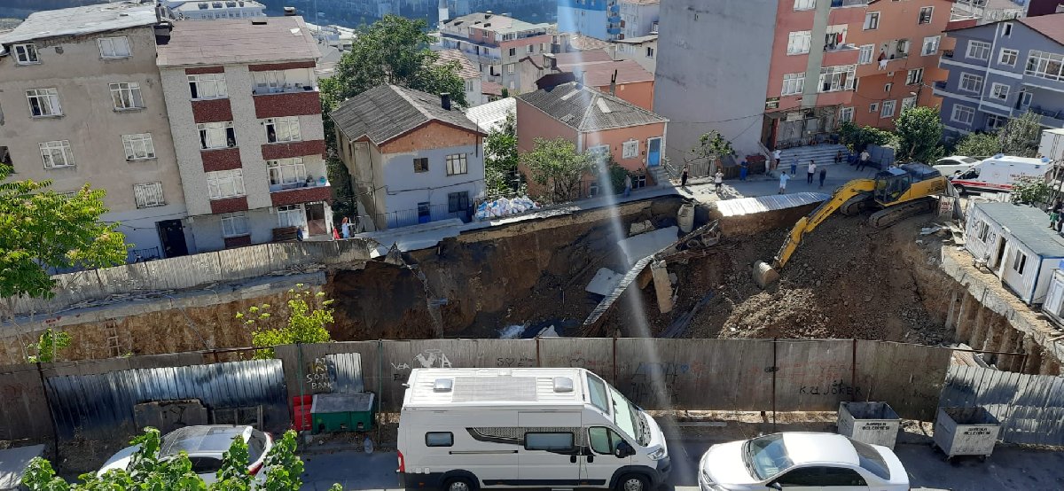 İstinat duvarının bir bölümü inşaat alanına doğru çökmesi nedeniyle çevredeki binalarda büyük korku yaşandı.