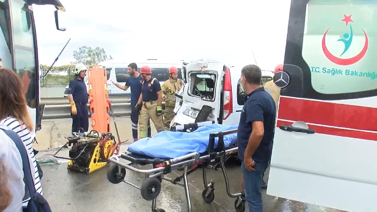 İçinde 15 yolcunun bulunduğu otobüs bariyere vurarak durabildi. Bu sırada, savrulan servis minibüsünden kaçmak isteyen bir taksi şoförü de önündeki otomobile çarptı