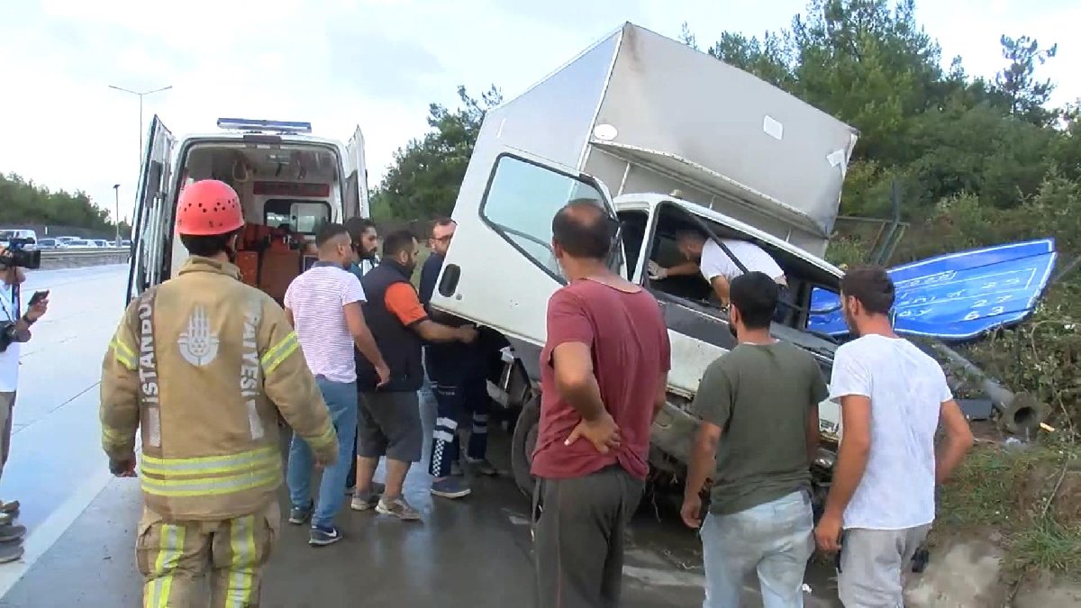 Kemerburgaz yönüne ilerleyen Mustafa Taşçı'nın kullandığı kamyonet, yağmur nedeniyle kayganlaşan yolda şoförünün direksiyon hakimiyetini kaybetmesi sonucu yol tabelasına çarptı.