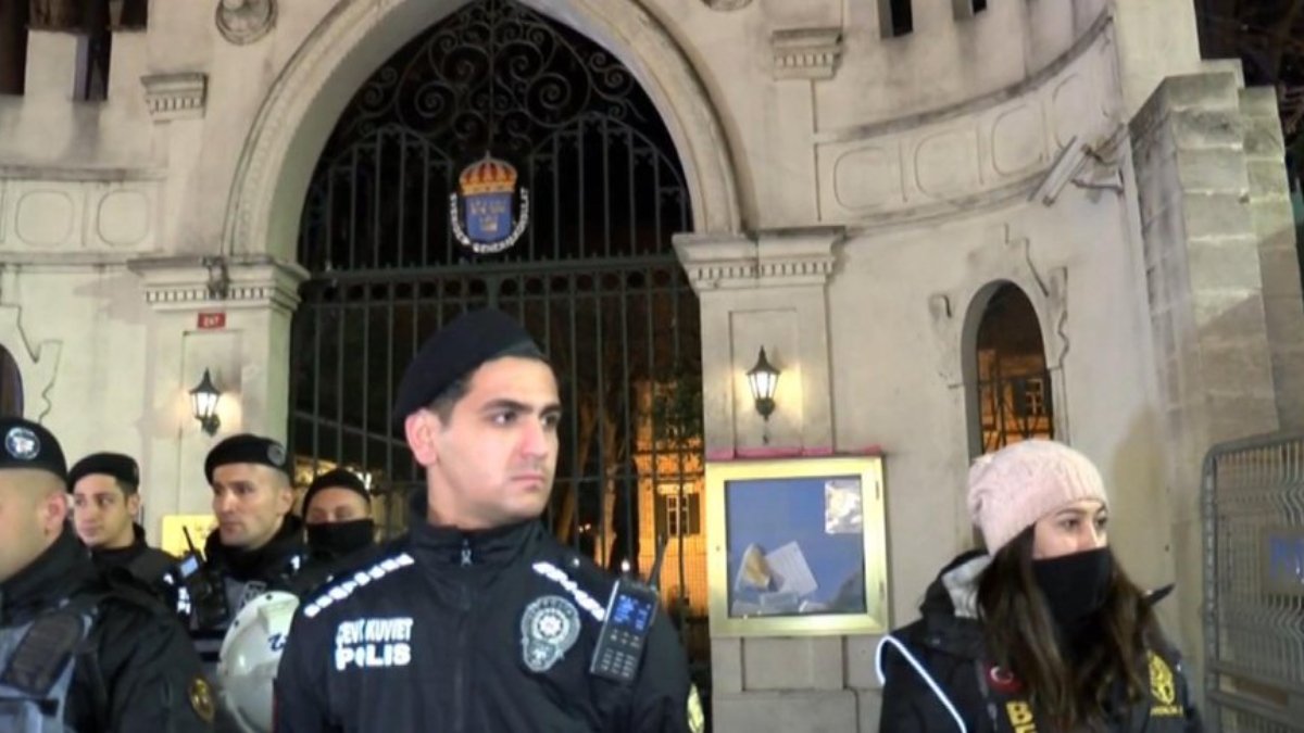 Konsolosluğun önünde ilerleyen dakikalarda beklenen protesto gösterisine yönelik polisin önlemleri sürüyor.