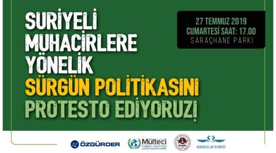 Suriyelilere destek veren grup çeşitli pankartlarla alana geldi.