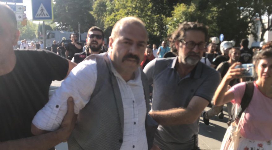 "Türkiye Türk’tür Türk kalacak" sloganları atan gruba Özgür-Der üyeleri müdahale etmeye çalışınca araya polis girdi. Slogan atan grubu alandan çıkaran ekipler, biri kadın iki kişiyi de gözaltına aldı.