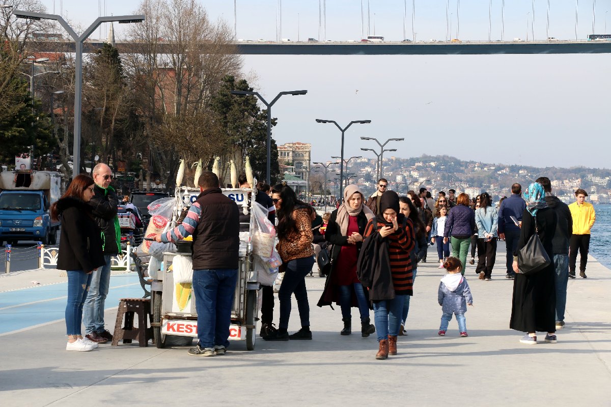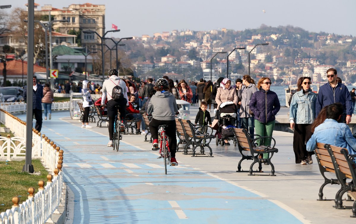 Bisikletleriyle tur atanlar ve paten sürenler sahil boyunca gezinmeyi tercih ederken, bazı vatandaşlar ise günü banklarda kitap okuyarak değerlendirdi.
