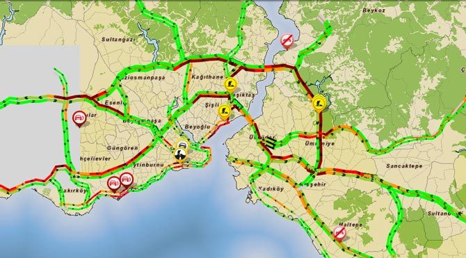 Saat 19.30 itibariyle bazı yollardaki trafik durumu şöyle: