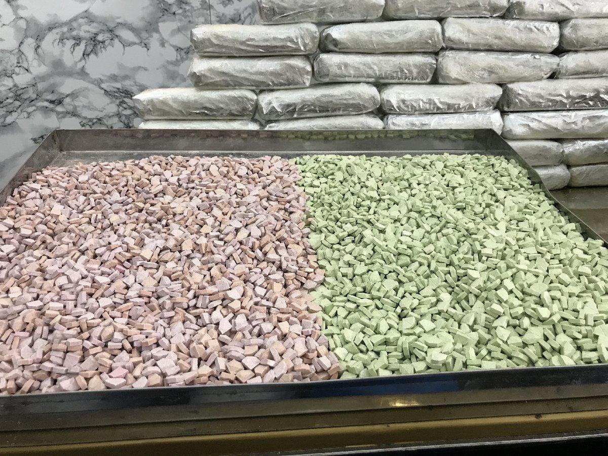 Narkotik madde bulma eğitimli dedektör köpeklerle yapılan aramalarda ise 269 kilo 900 gram metamfetamin, 33 kilo 500 gram eroin, 19 kilo kokain, 27 kilo 500 gram skunk ile 38 bin 635 ecstasy hap ele geçirildi.