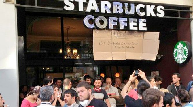 Kapılarını kapatıp eylemcileri dışarıda bırakmakla suçlanan Starbucks cephesinde işler karışık. İçeridekileri korumak için yaptıklarını söyleseler de tepkiler çığ gibi. Ama yerine göre: Mesela Bağdat Caddesi’nde logolarını bile söktüler. Şube, üzerinde “Yuh olsun size!” gibi yazılar yazan postitlerle ağlama duvarına çevrildi. Buna mukabil Nişantaşı Starbucks perşembe günü tıklım tıklımdı.