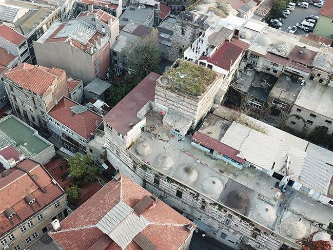 1500 yıldır ayakta kalmayı başaran kuleye matkapla delik açtılar. Foto: DHAOsmanlı padişahlarından Sultan I. Ahmet'in eşi Kösem Sultan tarafından kervansaray kompleksi olarak inşa ettirilen, günümüzde Eminönü Mercan'da yer alan Büyük Valide Han ve Sağır Han'ın ortasında yükselen kule, hakkındaki çeşitli hazine iddialarının sebebiyle yıllardır definecilerin hedefi oldu. Tarihi yapı bugünlerde ise ağır bir tahribat daha yaşıyor. Kulenin tepesinde ve çevresinde izinsiz kazılar define avı şüphesi taşıyor. Kulenin çevresini saran kaçak yapılardan birinde 'tadilat' adı altında yapılan çalışmalar havadan görüntülendi.